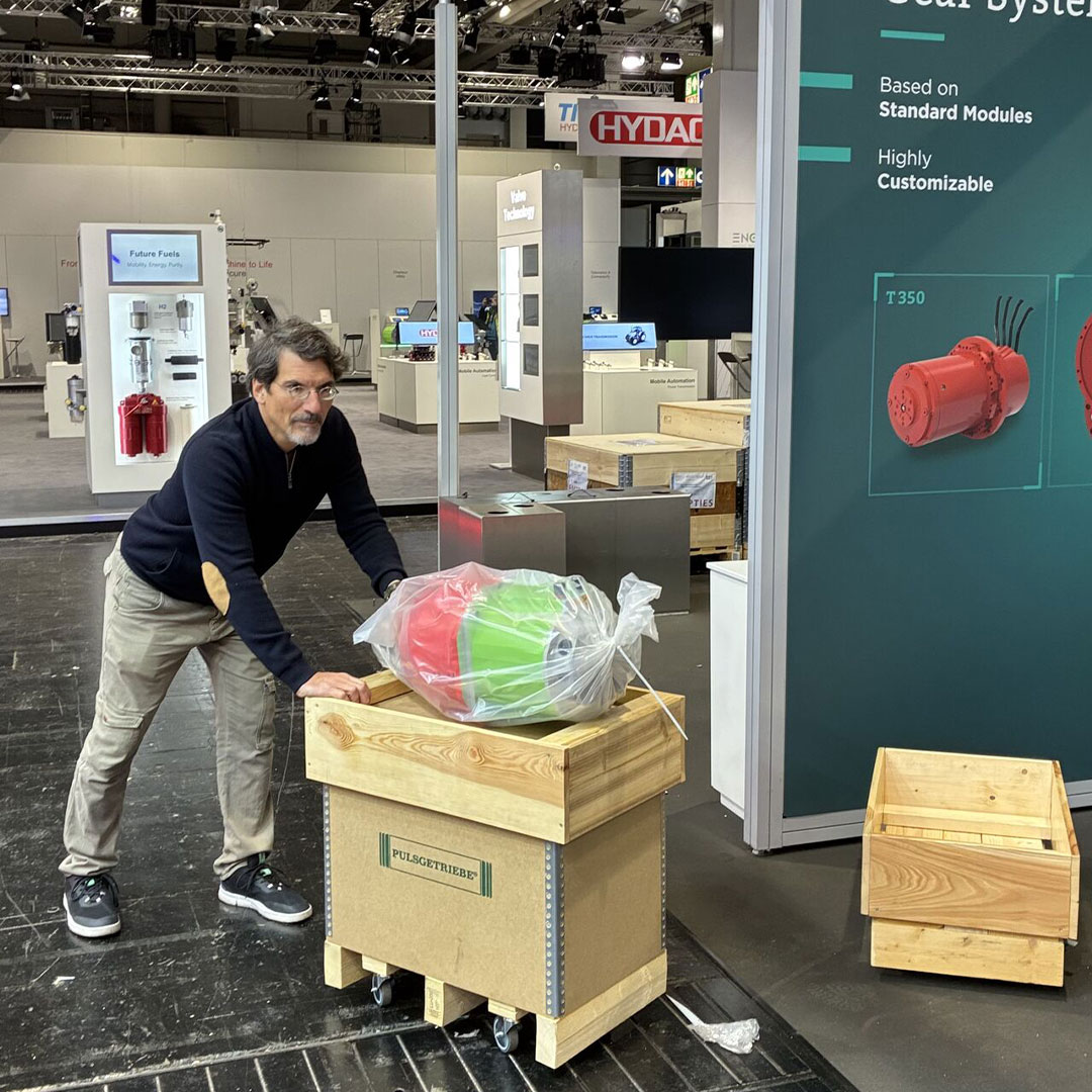 Als mittelstĂ€ndischer Antriebsspezialist bauen wir natĂŒrlich unseren Stand selbst auf. Und ĂŒber die letzten Jahre haben wir dafĂŒr einiges an Erfahrung gesammelt â damit es am spĂ€ten Abend einfach schneller geht.